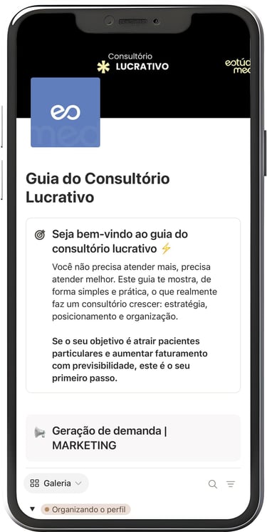 Não. O Guia do Consultório Lucrativo não é um curso em vídeo nem uma formação, mas uma central estratégica no Notion de organização do modelo de crescimento do consultório, com estrutura, ferramentas e direcionamento prático para implementação.